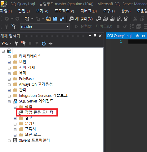 이때 MSSQL SERVER에는 작업 스케줄러를 등록하고 실행하는 에이전트가 존재합니다.