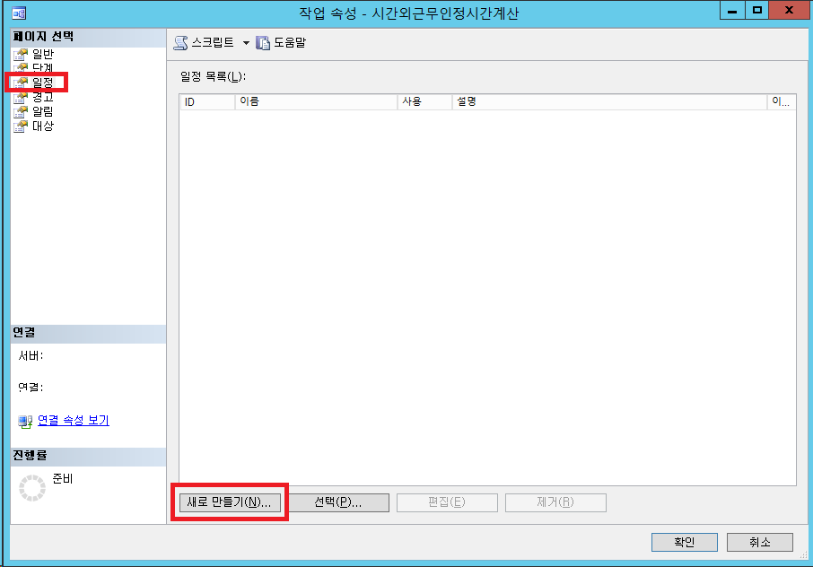일정 > 새로만들기를 클릭합니다.