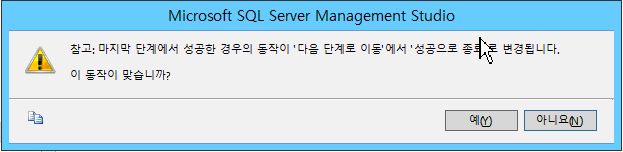 만약 아래와 같은 창이 발생시 단계가 하나만 존재할 경우는 예/ 추가 단계를 입력할 경우 아니오