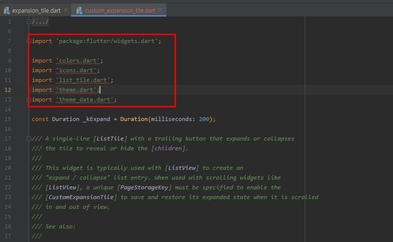 - import 부분을 전부 제거 한 후 import 'package:flutter/material.dart'; 추가