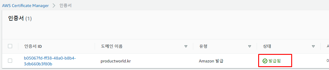 검증이 완료되면 이렇게 발급됨이 표시됩니다. 검증은 시간이 조금 소요될 수 있습니다.