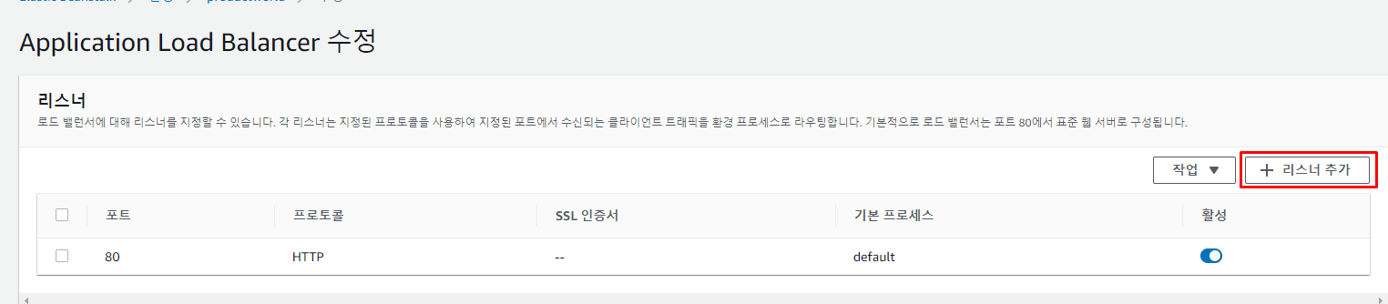 EB 콘솔로 이동한 후 구성 > 로드밸런서 > 편집으로 들어갑니다.