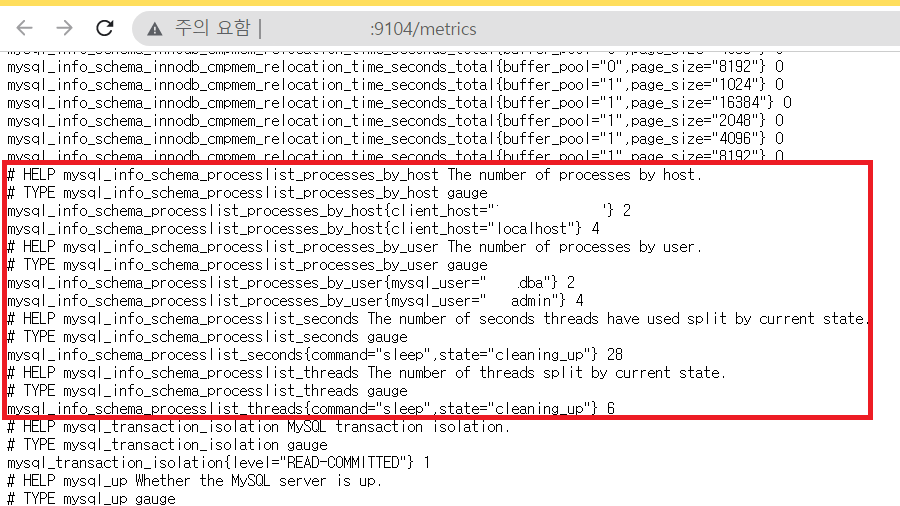 Mysqld-exporter의 경우 별도의 설정이 없을 경우 기본 항목의 지표들을 수집합니다. 필요시 Flag 값을 설정하여 다양한 값을 추가로 수집할 수 있습니다. 수집하는 항목의 경우 Mysql Server에 쿼리를 전달하여 해당 지표를 가져오는 방식이니 쿼리 실행시간이 길 경우 주의해야합니다. 여기서는 processlist를 수집해보겠습니다.