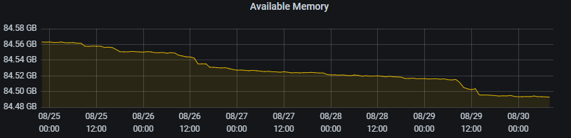 기존 메모리가 46 -> 84GB로 올라온 것을 확인할 수 있었습니다. Failover로 기존 인스턴스의 재부팅이 진행되면서 할당된 프로세스 메모리가 해제된 것으로 보입니다.