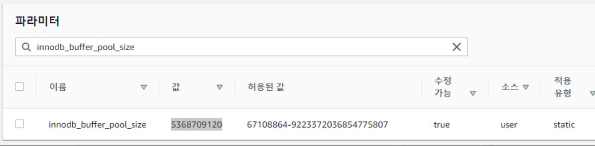 어느정도 트래픽이 있는 환경에서 버퍼풀이 잘못 설정될 경우 성능에 큰 영향이 있을 수 있으니 주의해야합니다. 또한 버퍼 풀 이외에도 Aurora를 운영하는 파라미터 그룹의 가변 변수를 임의로 설정한 후 복사할 경우 다른 인스턴스에 적용하기 전에 반드시 확인합시다!